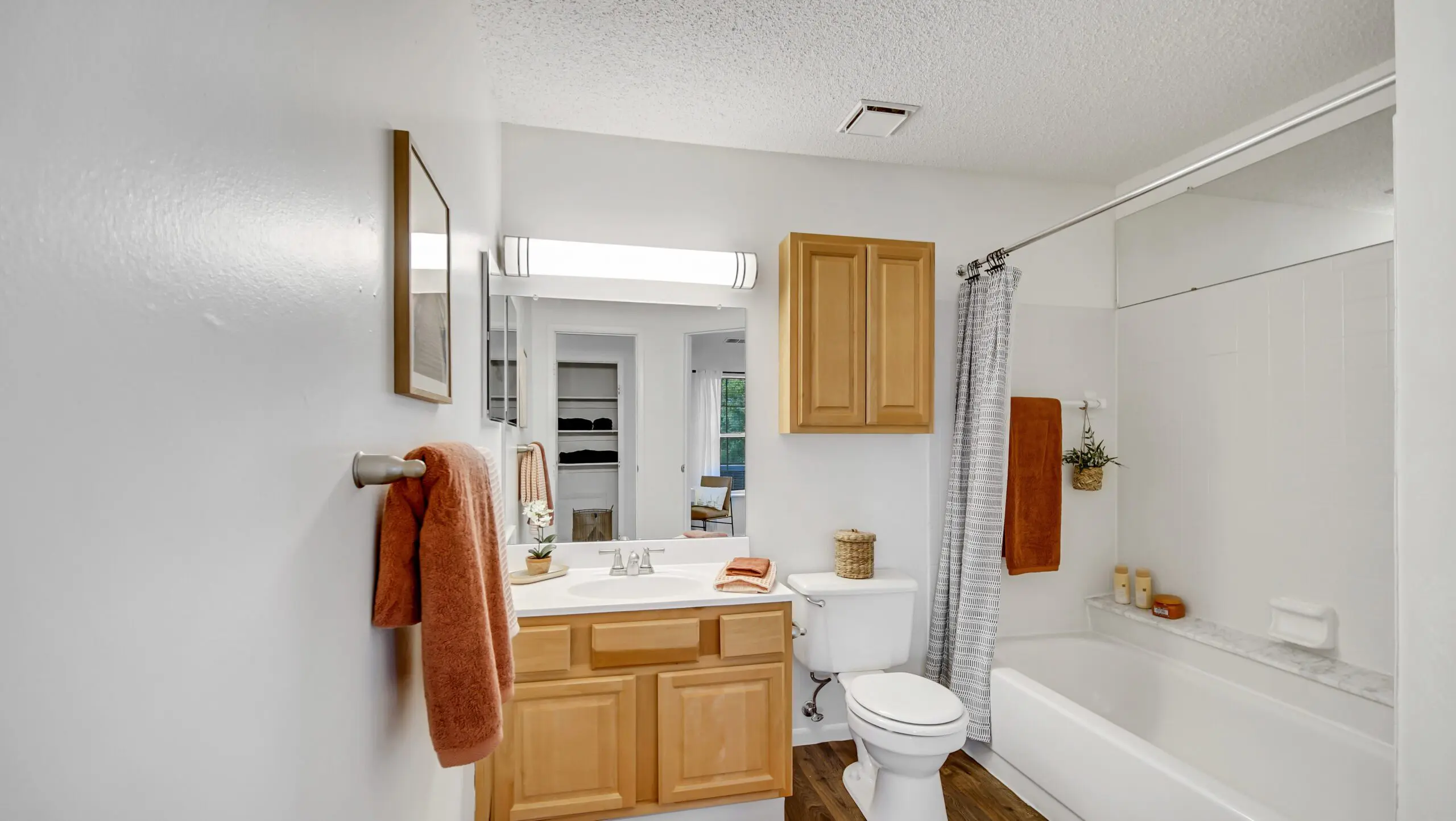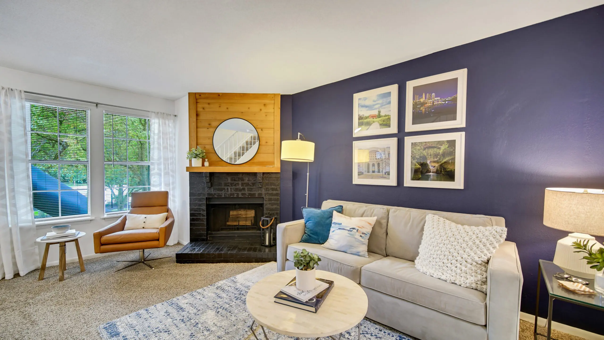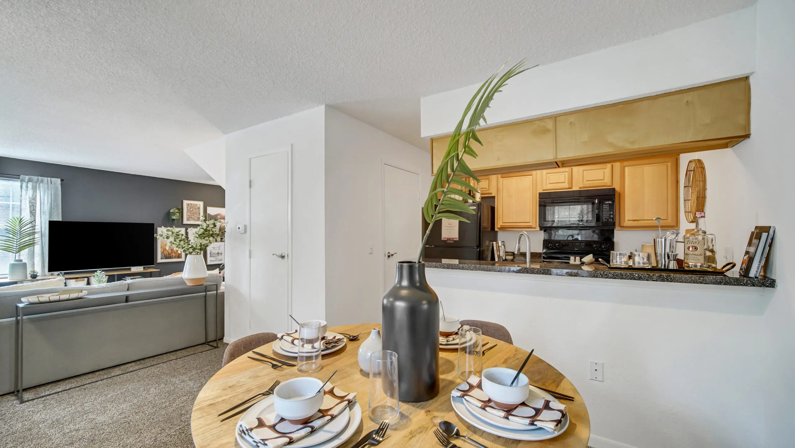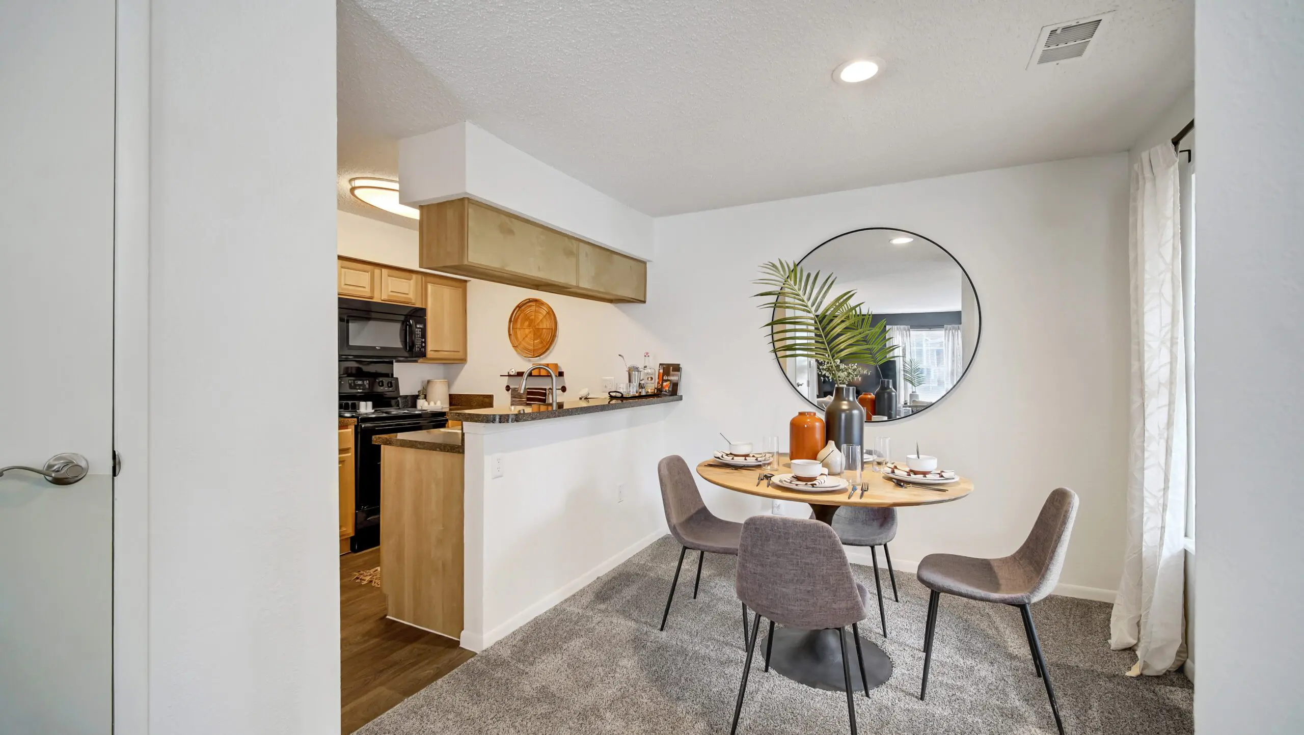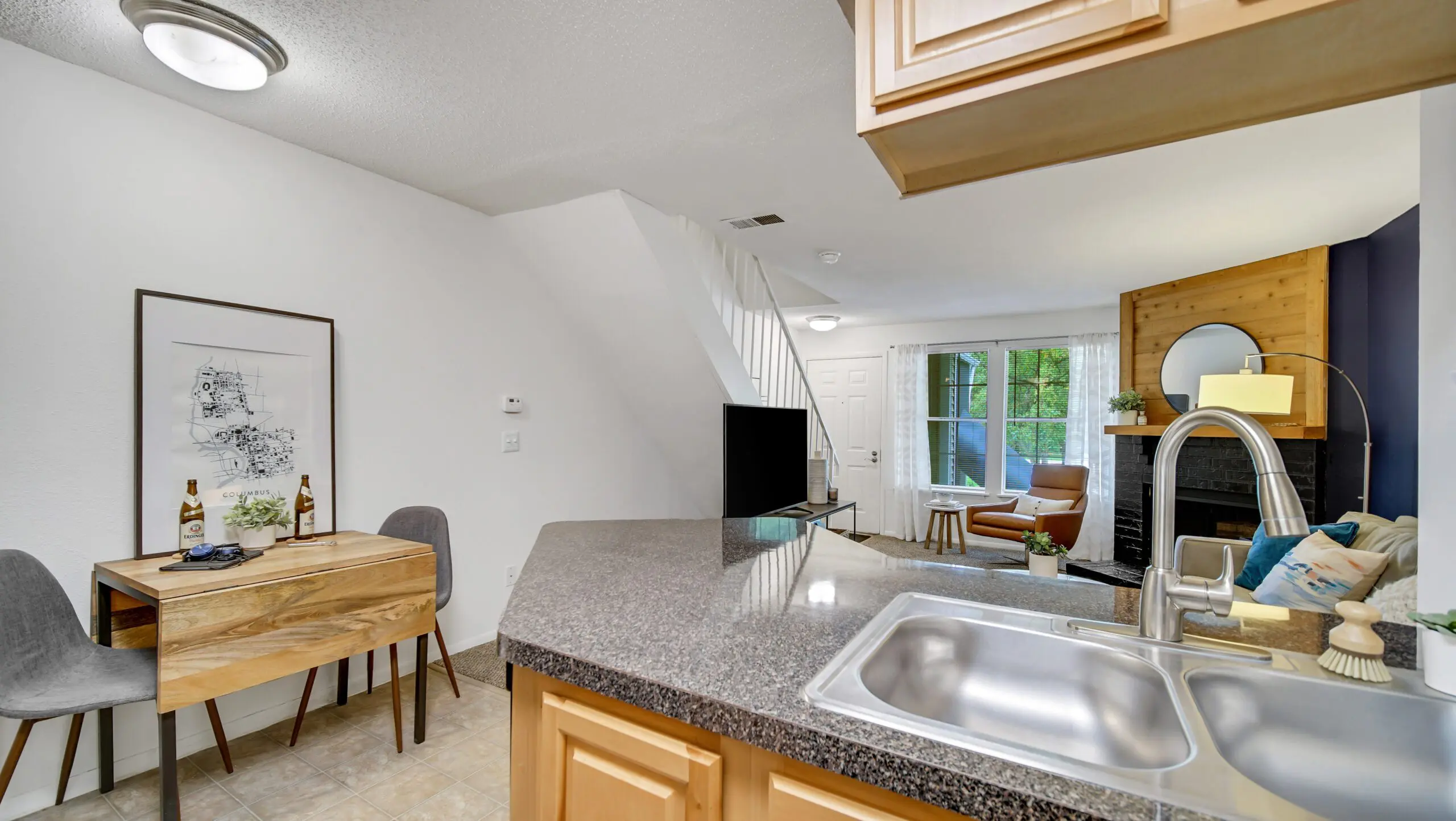 Our unique 1 and 2 bedroom apartment homes feature updated kitchens and baths, walk-in closets, recessed lighting, ceiling fans, modern black Whirlpool appliances, brushed nickel fixtures, full-size washer and dryers, and private balconies or patios. In select apartment homes you’ll find delightful features such as wood-burning fireplaces, lake views, vaulted ceilings, and Jacuzzi tubs.